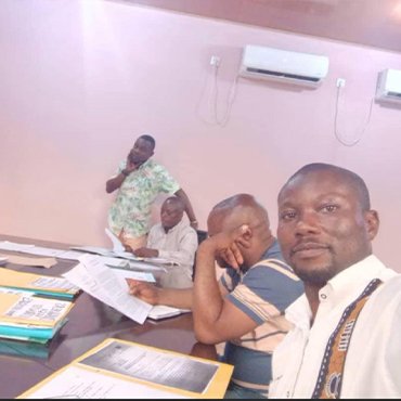 Séance de travail en rapport avec le contrat de partenariat entre la Mairie de la Ville de Matadi en RDC et the IOA. Ont participé à cette séance, le Maire de la Ville, Monsieur Nkodia, le Président the IOA, Monsieur MWANZA et leurs staff