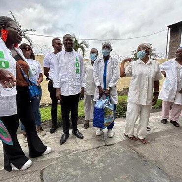 The IOA a remis le samedi 09/09/2023, des dons des tenues médicales et autres dans 4 hôpitaux de différentes communes de la Ville Province de Kinshasa/RDC (Ngiri-Ngiri, Kinshasa, Kalamu et Kisenso), dans le cadre du bien-être social de la population et à titre symbolique. La Délégation a été conduite par son Président, accompagné des Représentants the IOA de l’Europe et autres membres. La délégation a profité de cette occasion pour visiter les malades et les femmes qui ont accouchées.